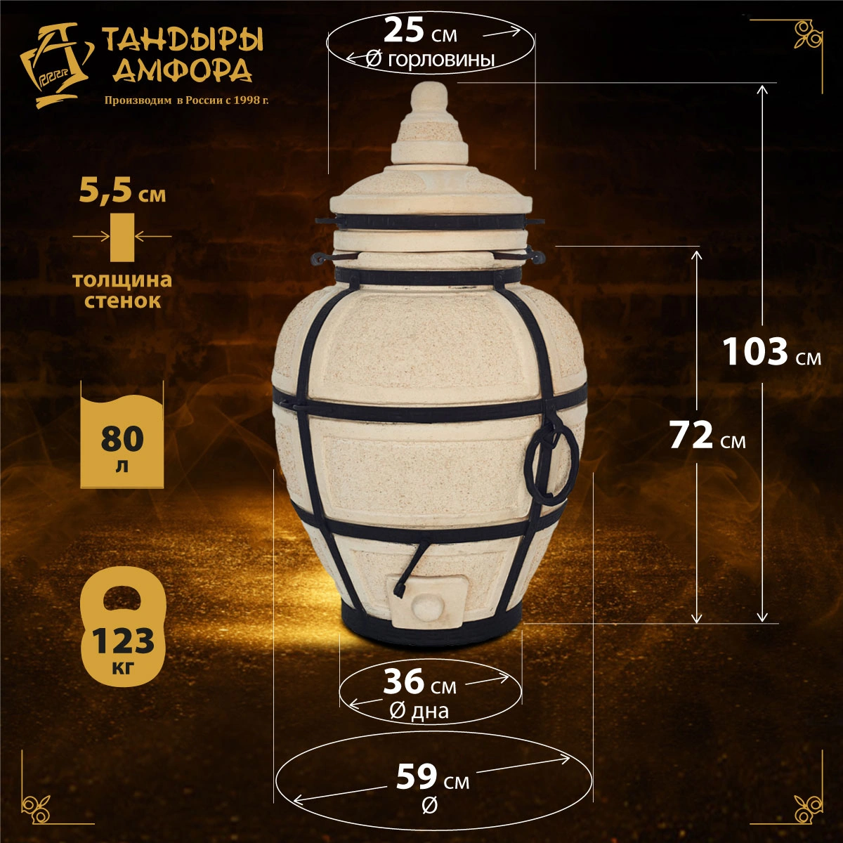 Тандыр дровяной AMFORA "Большой" откидная крышка