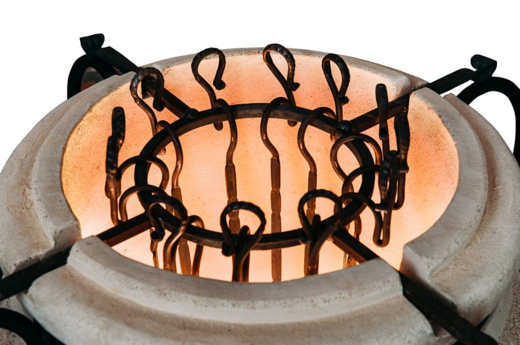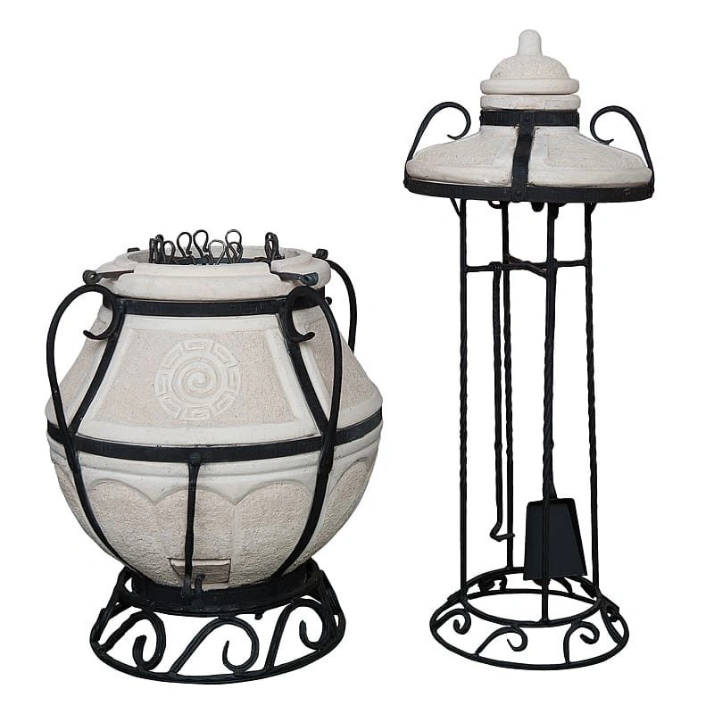 Тандыр — уличная печь из экологически чистого огнеупорного материала, глины с добавками. Керамический корпус усилен кованым каркасом. Процесс приготовления пищи осуществляется за счет мощной теплоотдачи стен, продукты прожариваются быстро и равномерно.
