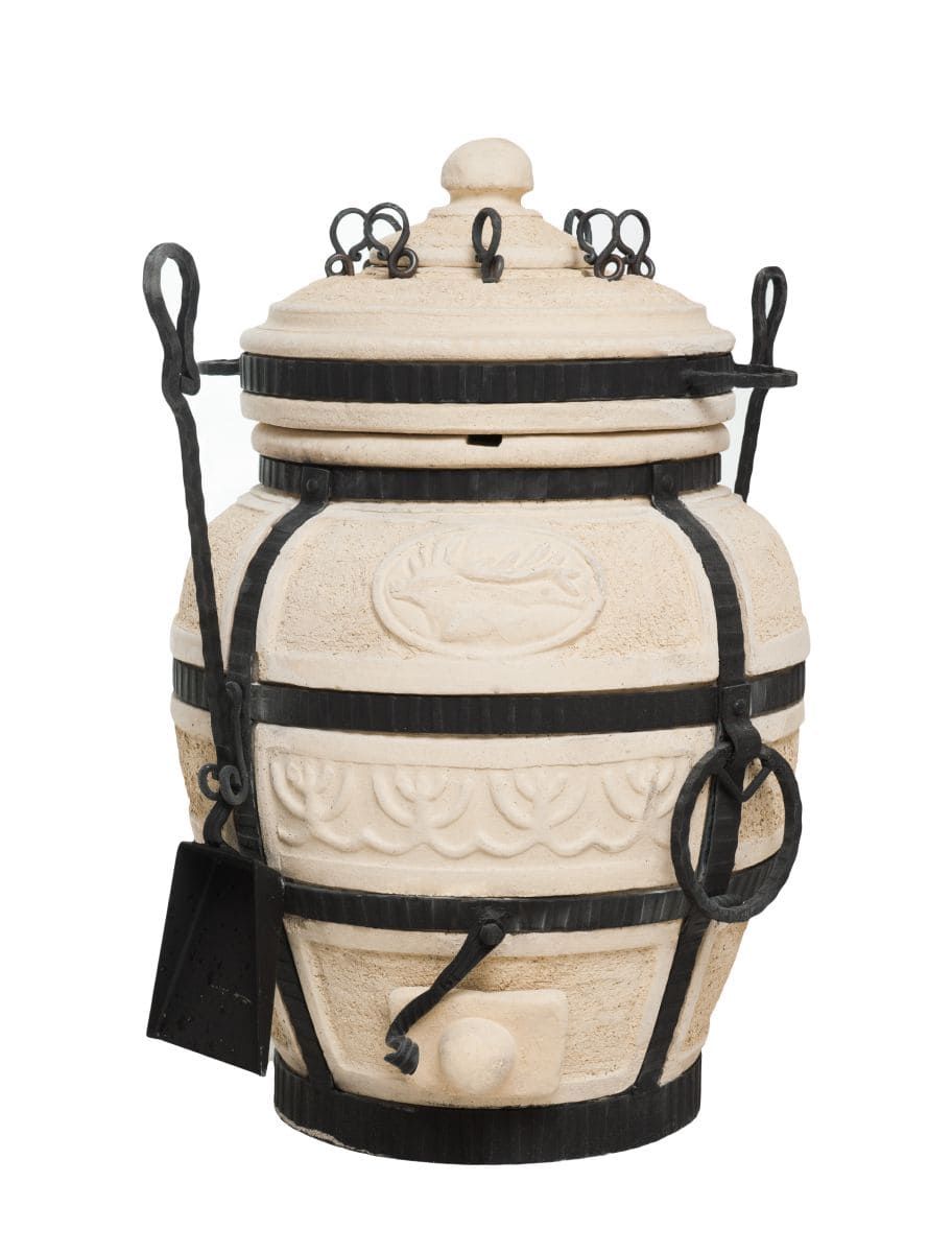 Тандыр — уличная печь из экологически чистого огнеупорного материала, глины с добавками. Керамический корпус усилен кованым каркасом. Процесс приготовления пищи осуществляется за счет мощной теплоотдачи стен, продукты прожариваются быстро и равномерно.