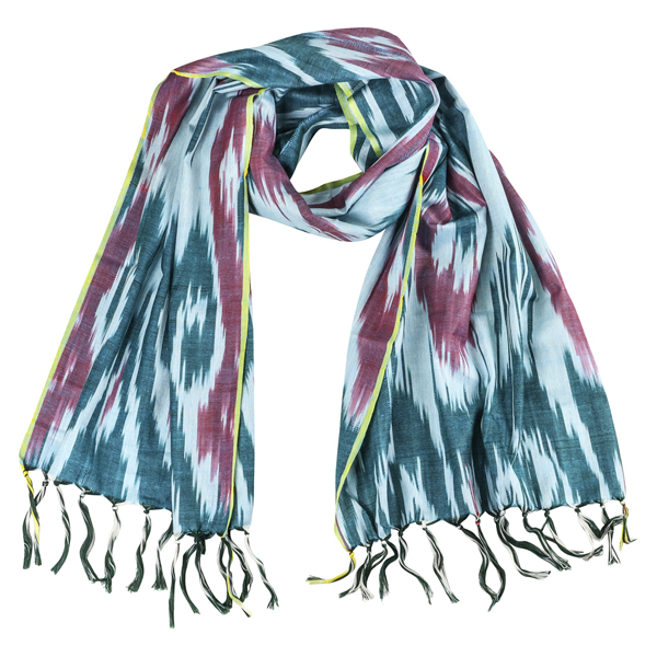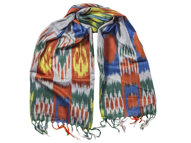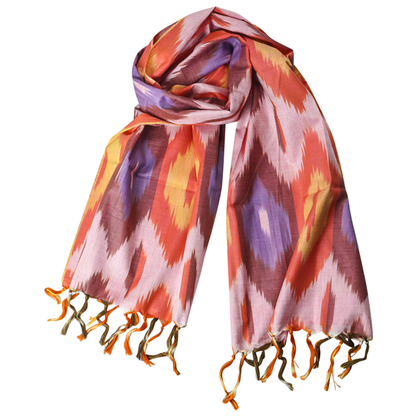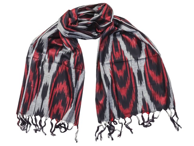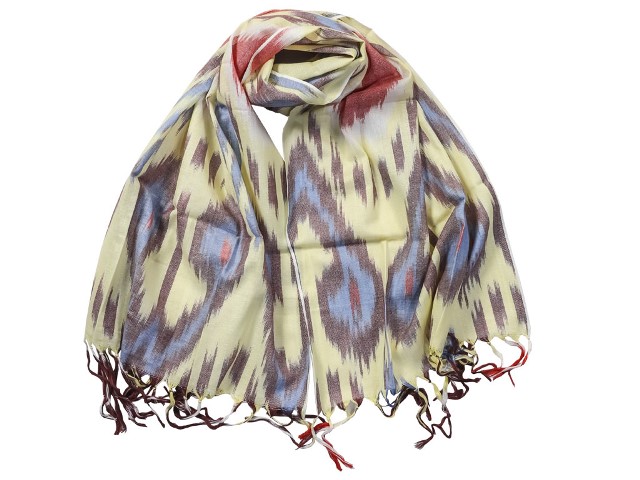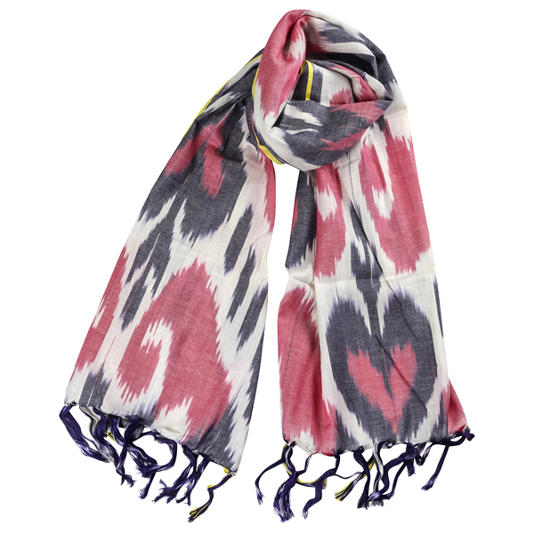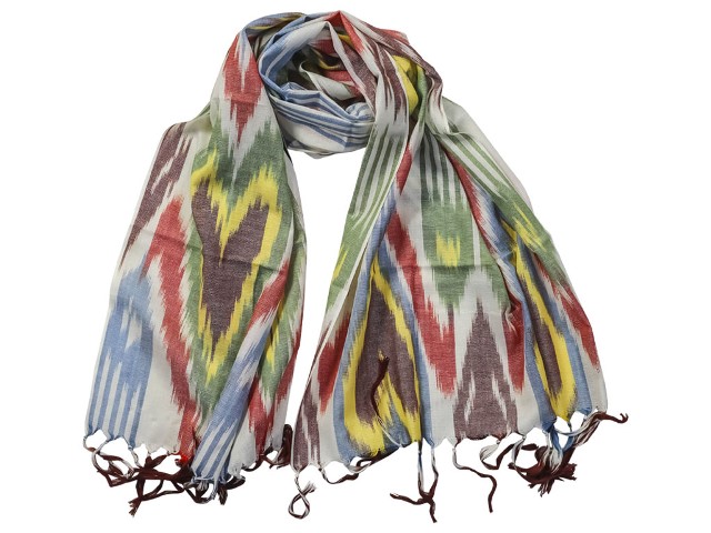 Шарф из узбекской традиционной ткани адрас (100% хлопок) с узором икат.