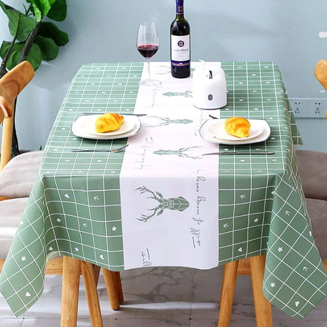 Скатерть-клеенка сделана из современного материала, загрязнения с нее удаляются легко и быстро. Бело-зеленая расцветка и природные мотивы будут гармонировать и с актуальным, и с классическим интерьером. Скатерть квадратной формы имеет размер 137 на 137 см и идеально подходит для семейного стола, рассчитанного на четырех человек.