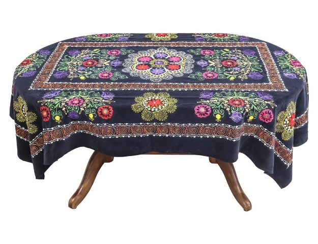 Скатерть с традиционной узбекской вышивкой "Сюзане", вышивка выполнена вискозно-шелковыми нитями.В концепции узора, вышитого на полотне, лежит растительная тема, в виде цветущего сада.
