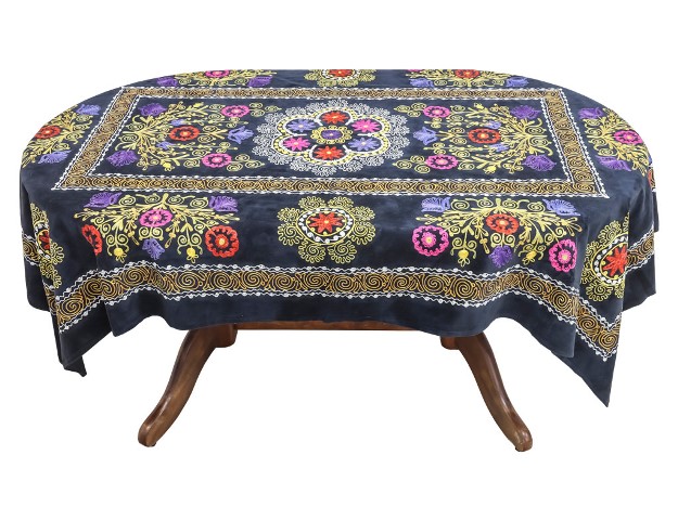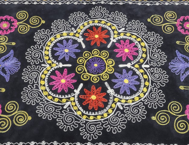 Скатерть с традиционной узбекской вышивкой "Сюзане", вышивка выполнена вискозно-шелковыми нитями.В концепции узора, вышитого на полотне, лежит растительная тема, в виде цветущего сада.