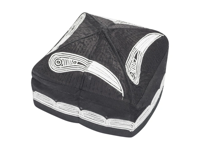 Тюбетейка – национальный головной убор Востока. Имея острую или округлую форму, украшается вышивкой или вытканными узорами. Само слово Тюбетейка имеет татарские корни, произошло оно от слово «тюбете», что в переводе значит – верхняя часть, вершина. В Узбекистане же принято называть этот головной убор «калпок» или «дуппи». Тюбетейки, выполненные в строгом стиле, но всё же очень красиво смотрящиеся на голове. Это контрастные узоры из чёрного и белого цветов, по четыре стороны вышиты узоры в форме стручкового перца «калампир». Считается, что выкройка четырех цветков в куполе тюбетейки призваны оберегать состояние здоровья мужчины, а целых шестнадцать полукруглых узоров по кайме – символ дружбы и богатства семьи. Ни один мужчина не придёт на мероприятие без этой тюбетейки, будь то свадьба, посещение молитвы в мечети, праздник или похоронная церемония.