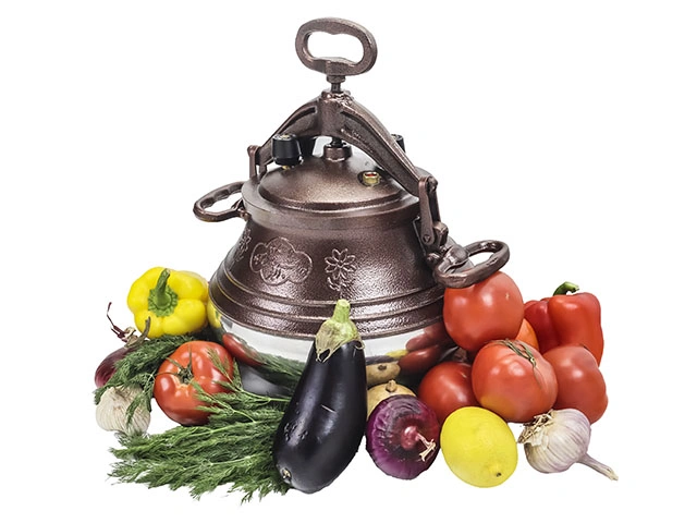 В этой восточной скороварке можно готовить и на кухне, и на свежем воздухе. Под герметично закрытой крышкой еда готовится значительно быстрее. Казаны сделаны из литого алюминия, они не тяжелые, но с толстыми стенками. Заполняют казан не до краев, а на две трети, — это поможет выбрать объем, подходящий для вашей семьи или компании. Как всегда, афганские казаны в каталоге разделены на четыре группы: черные, никелированные, двухцветные и комби-никель. Выбирайте дизайн на свой вкус!
