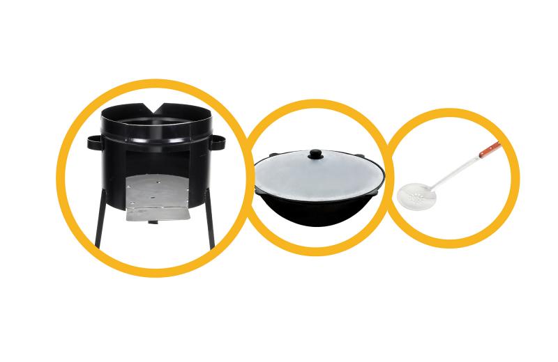 Наборы "три в одном": казан, печь и шумовка