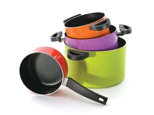 Яркие кастрюли и сотейники, прочные сковороды, наборы посуды, противни и формы для выпечки, универсальные и специальные ножи, разделочные доски.