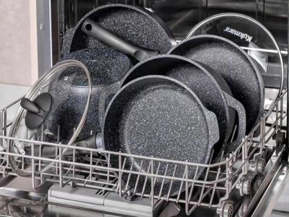 А что с антипригарной посудой, можно ли ее загружать в посудомойку? Посуду с антипригарным покрытием мыть в посудомоечной машине не рекомендуется: длительное воздействие на покрытие агрессивной и влажной среды сокращает срок службы посуды.