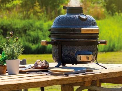 Скорость тления углей и общую температуру внутри контролируем с помощью заслонки, клапана и термодатчика. Керамический гриль способен выдерживать высокие температуры в течение длительного времени: экспериментируем, пропекая мясо от часа до суток.