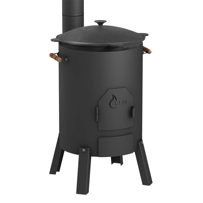 Удобная и надежная печь для приготовления пищи на открытом воздухе в казане емкостью 8-12 литров. Предусмотрено использование печи с варочной плитой. Корпус печи сварной, изготовлен из листовой стали толщиной 3 мм. Имеются удобные ручки для переноски, топочная дверца и зольный ящик. Ножки крепятся на корпус болтовым соединением.