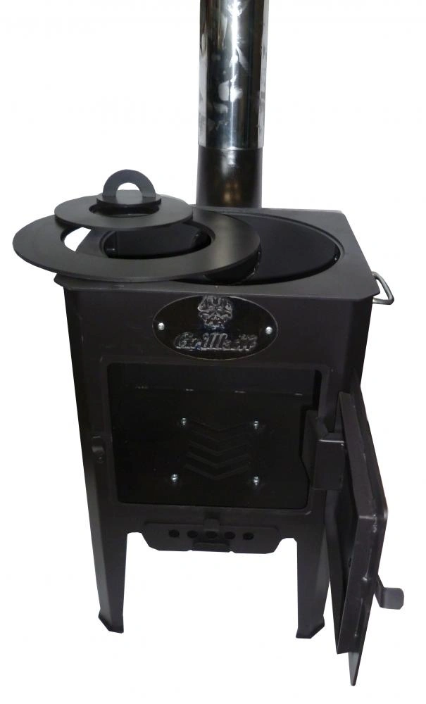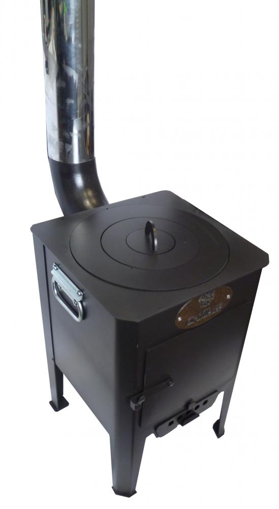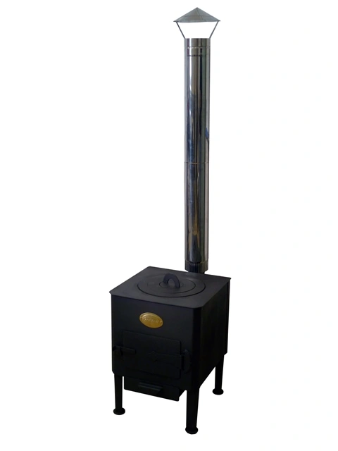 Печь предназначена для обогрева помещений и приготовления блюд в казане, кастрюле, на сковороде - благодаря сменным конфоркам. Высокий дымоход из нержавеющей стали. Обработана высокотемпературной краской. Цвет печи - черный.