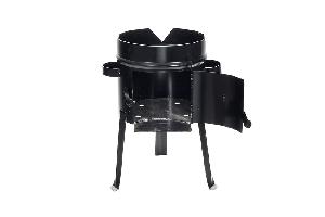 Садовая печь без дымохода имеет компактную конструкцию, стоит недорого. Ее легко перевозить в багажнике, если объем небольшой и в комплект не входят дополнительные аксессуары.