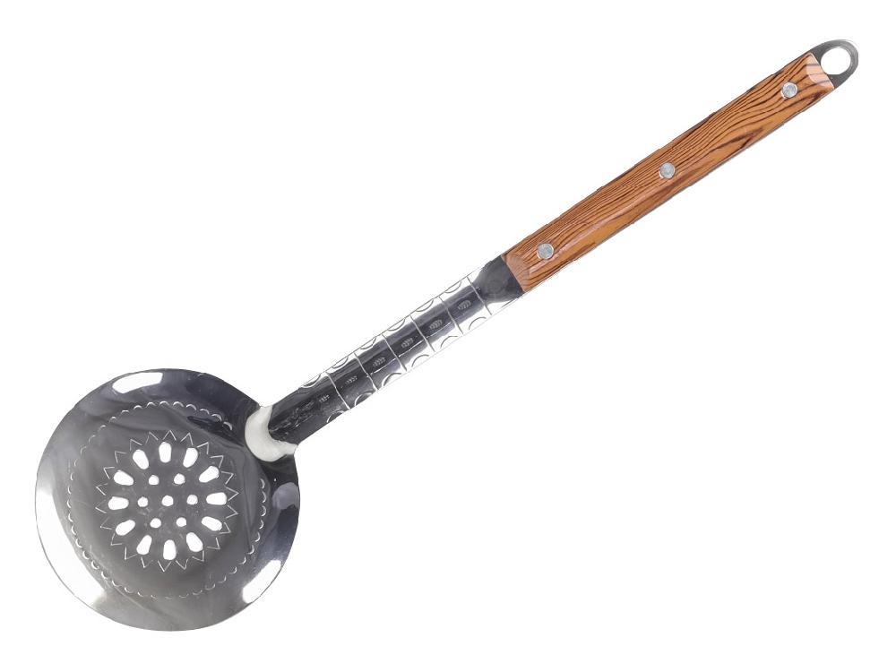 Удобная, качественно изготовленная шумовка, незаменима для приготовления плова и других блюд. Изготовлена из нержавеющей стали с деревянной ручкой, подойдет для казанов объемом от 4 до 8 литров.