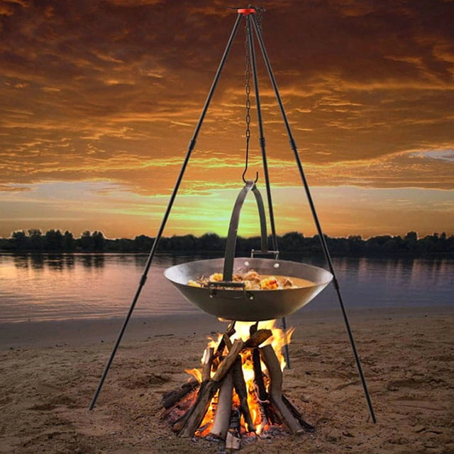 Прочная стальная тренога существенно облегчает приготовление полноценной пищи в походе или на рыбалке, ее можно легко и быстро установить над костром. Благодаря складным ножкам, треногу удобно хранить и перевозить. В сложенном виде она почти в три раза компактней, чем в собранном, и занимает в рюкзаке или багажнике совсем немного места.