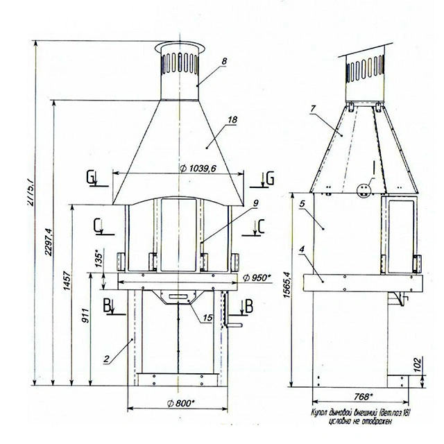 Гриль, регулируемые по высоте решетка гриль из нержавеющей стали, подставки, зольник, жаропрочное стекло, шамотный кирпич.