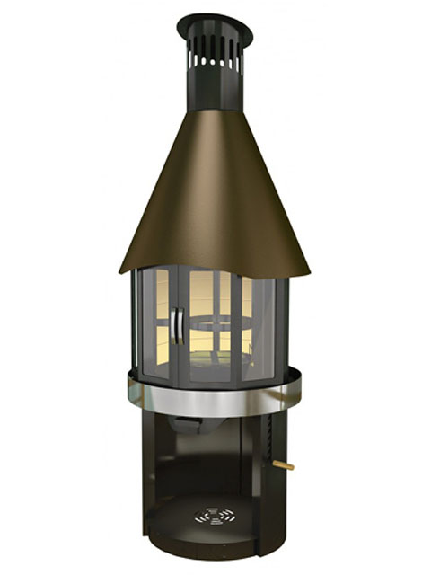 Прочный корпус изготовлен из высококачественных сплавов металла, что послужит залогом надежности и долговечности. В конструкции гриля-камина использован шамотный кирпич, обладающий хорошей теплоотдачей и позволяющий сохранить тепло после затухания огня. Гриль оснащен защитным жаропрочным стеклом, которое обеспечивает надежную защиту от искр. В нижней части гриля находится отсек для хранения дров. Жаровня гриля оснащена решеткой из нержавеющей стали, а также съемными поворотными подставками, служащими для приготовления пищи на огне.