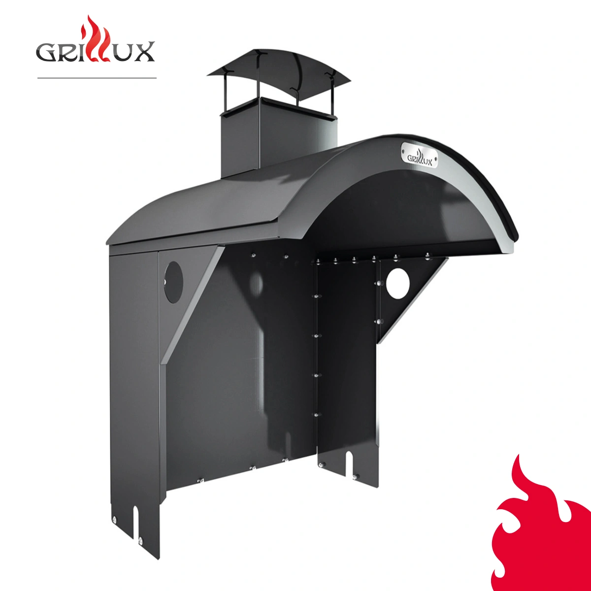 • может быть оборудован крышей с дымоходом (приобретается отдельно)