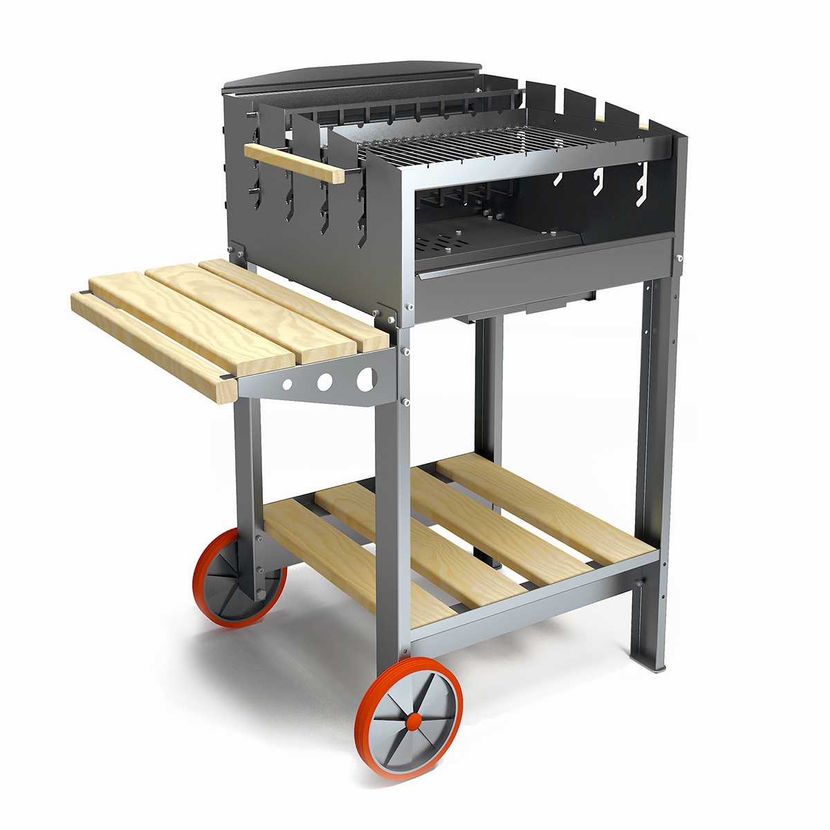 Гриль, рамка для шампуров, решетка-гриль из нержавеющей стали, подвесная полка, генератор угля, ножки с колесом