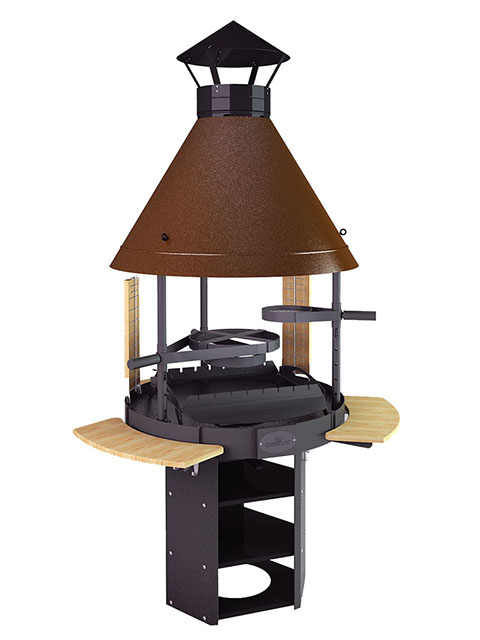 . Подвесные деревянные столешницы существенно помогают в процессе готовки – вся нужная посуда и ингредиенты у повара теперь под рукой. Какой открывается простор для кулинарного творчества! Возможны разные варианты поставки с цветом купола черный, либо антик медь.
