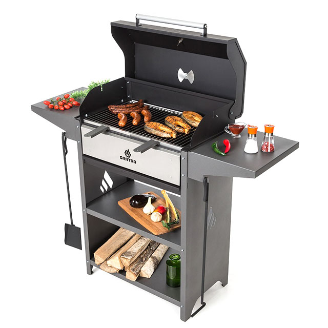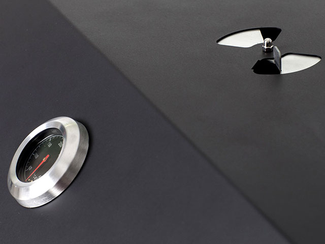 • выдвижной зольник и воздушная заслонка на крышке мангала позволяют регулировать температуру приготовления