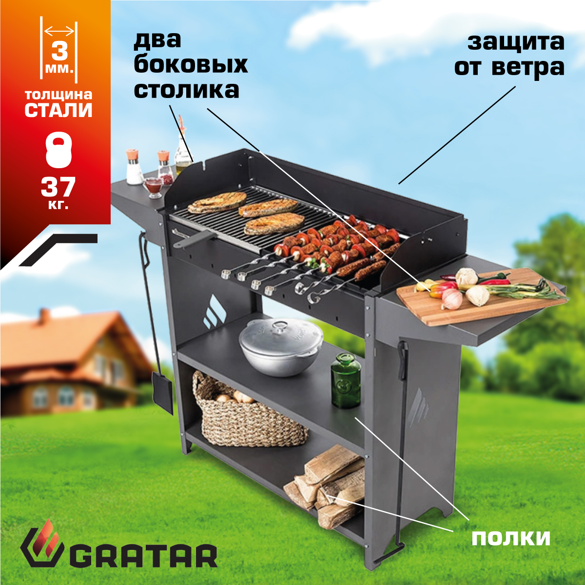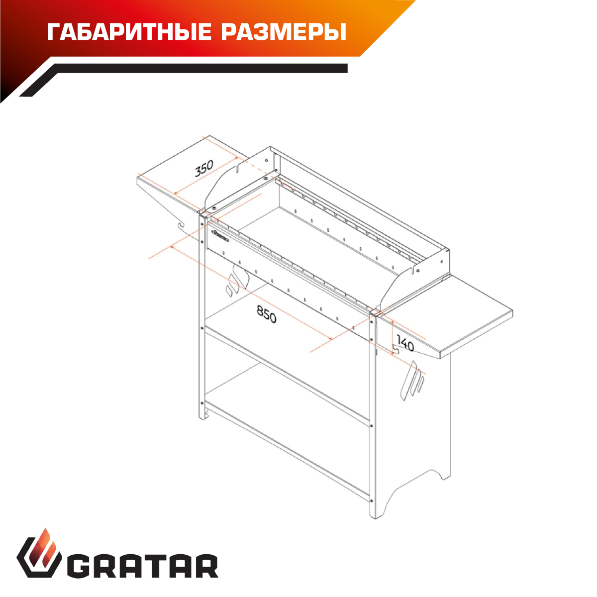 * топка мангала может вместить две решётки барбекю GRAT-35