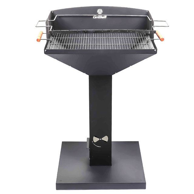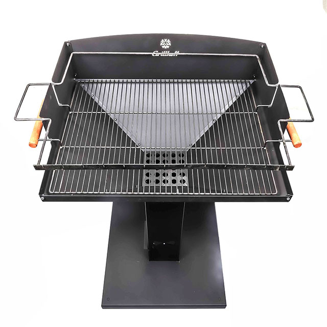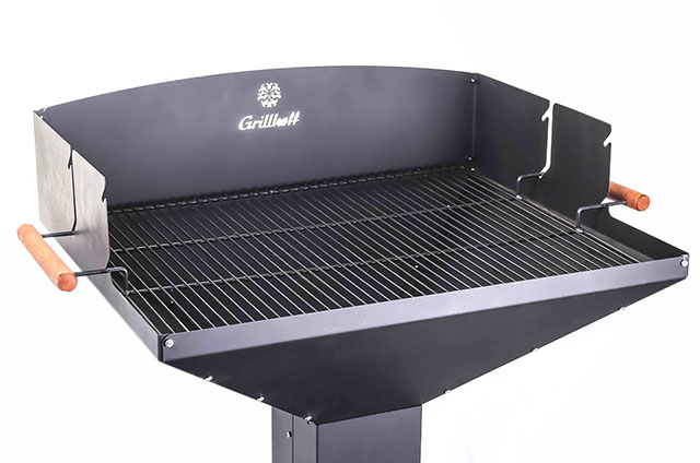 Большая рабочая поверхность. Высокая, устойчивая конструкция. В комплекте рамка для 10 шампуров и решетка для барбекю. Два уровня высоты над жаровней. Размер рабочей поверхности 620*480 мм. Возможность регулировки температуры с помощью нижнего поддува. Сталь мангала 08ПС толщиной 1 мм