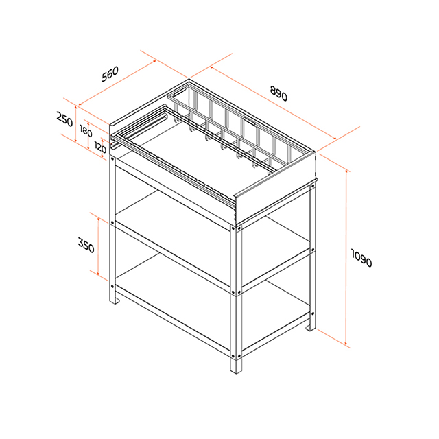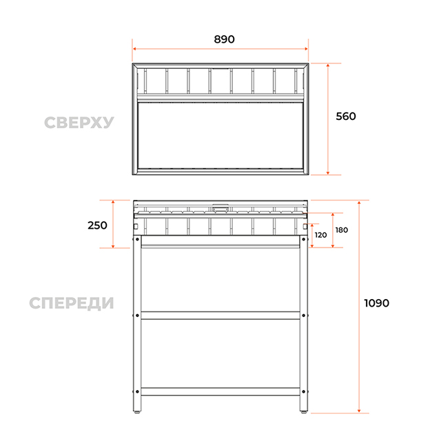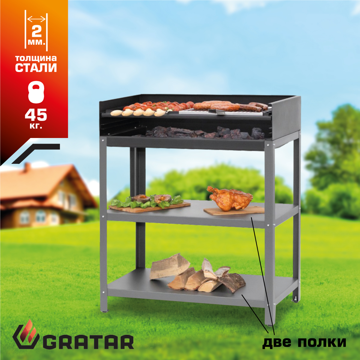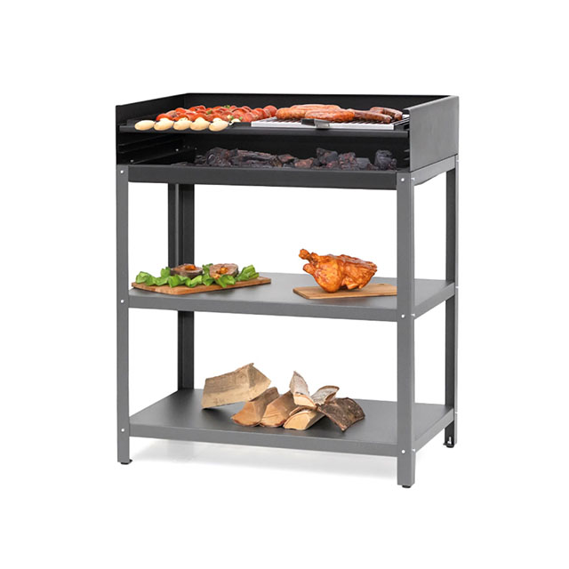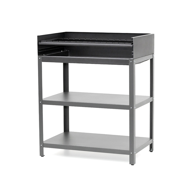 Угольный гриль— основной модуль уличной кухни. Благодаря толстым стенкам и дну, он выдерживает дровяную растопку и не деформируется при высоких температурах. Топка защищена от ветра. Расстояние до углей регулируется. Гриль оснащен двумя полками для продуктов и инструментов.