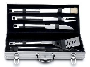 В этом разделе каталога вы найдете отдельные инструменты, но лучше купить набор для барбекю в сумке — инструменты систематизированы, при перевозке остаются на местах. Самые простые комплекты состоят из трех-четырех предметов: щетки, щипцов, лопатки, кисточки. Прочная легко моющаяся кисть помогает распределить маринад по поверхности мяса. Щипцы необходимы, чтобы не пачкать руки, они удобны при работе с сырыми и готовыми ингредиентами. Щипцы с рифлеными краями лучше удерживают продукты. Размер лопатки должен подходить к высоте жаровни, чтобы приготовление стейков не обернулось болью в руке. Щетку выбирайте жесткую, с длинной ручкой, закругленными краями рабочей части. Большой подарочный кейс может включать вилки, стейковые ножи, вилочки для кукурузы, шампуры, солонки, перечницы. Дополнительно советуем приобрести рукавицы и фартук, они пригодятся независимо от того, покупаете вы инструменты себе или в подарок.