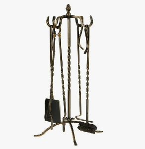 Изысканный каминный набор — это инструменты первой необходимости, а также удобная стойка, предназначенная для их хранения и быстрого доступа. Стойка имеет четыре устойчивые ножки, шишкообразный декоративный набалдашник и четыре крюка для подвеса.