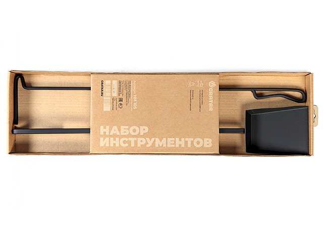 Каминный набор в современной крафтовой упаковке включает совок и кочергу – самое необходимое для управления огнем, для ухода за камином, печью, грилем, мангалом и пространством вокруг них. Минималистичные стальные инструменты черного цвета стильно выглядят и долго служат.