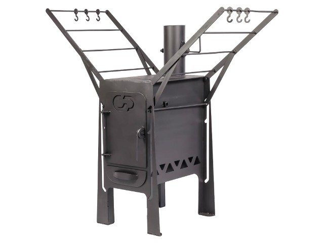 Ширина - 32см Глубина - 45см Высота - 70см, с трубой - 95см Сушилки по 50см на каждой по 3 крючка Толщина металла - 4мм Конфорка - 18 и 12см Заслонка на трубе Вес 55кг