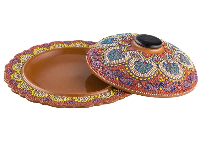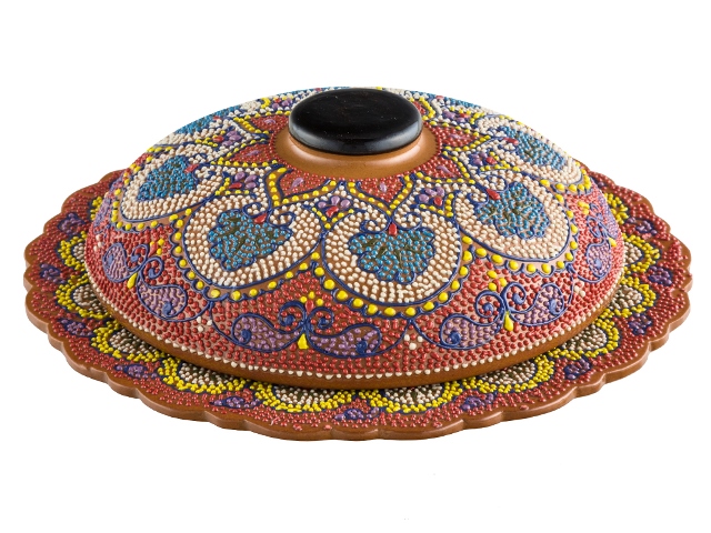 Блюдо с крышкой "Риштанская керамика", Точечная роспись, Ø 28 см