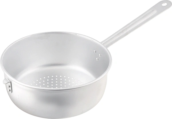Дуршлаг изготовлен из матового пищевого алюминия. Алюминиевая посуда без покрытия неприхотлива в уходе, по качеству и безопасности соответствует государственным стандартам РФ и гигиеническим нормативам.