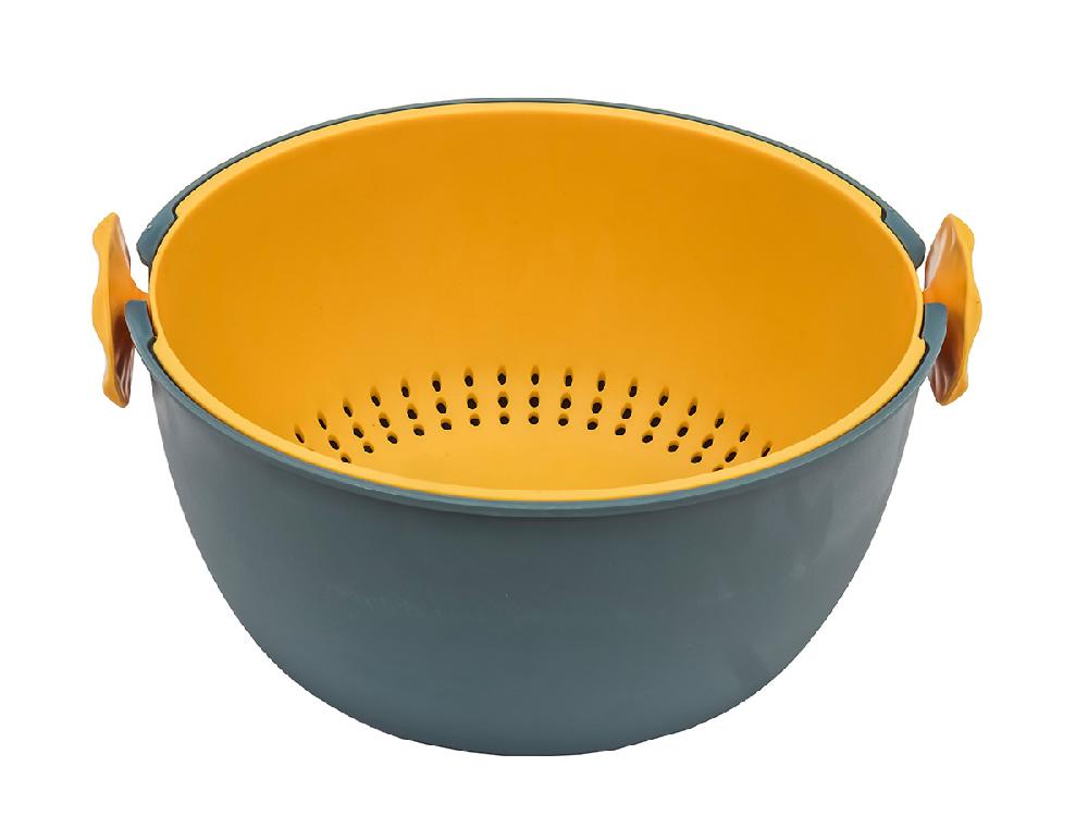 Дуршлаг с миской 2 в 1 круглый, пластиковый, 2 л, синий/желтый