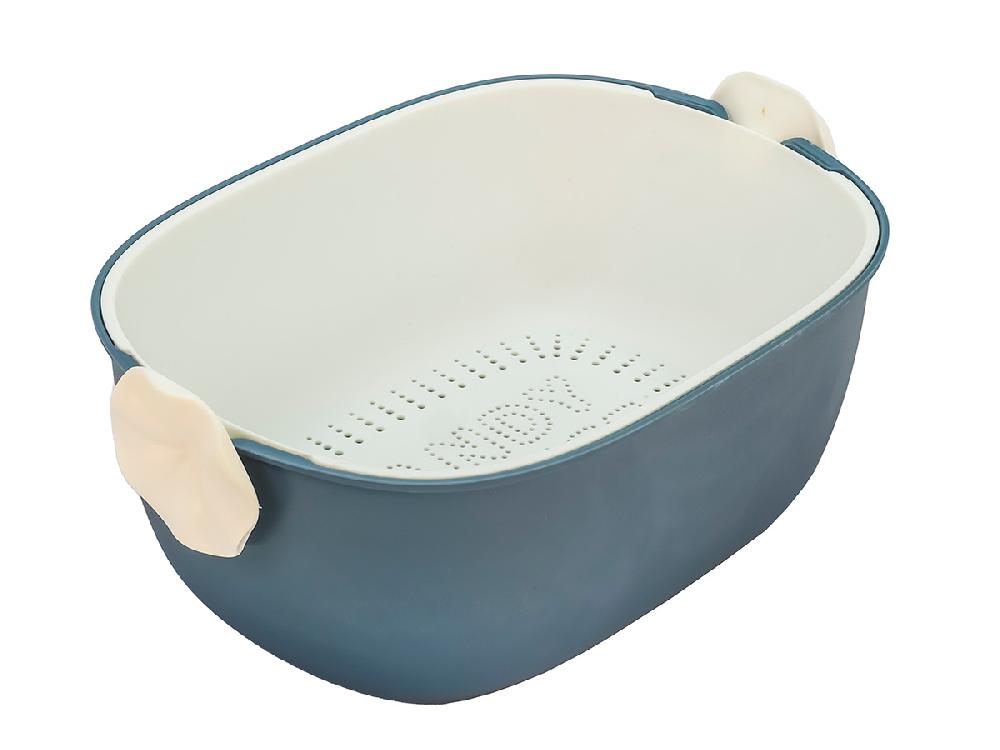 Дуршлаг с миской 2 в 1 овальный, пластиковый, 2.5 л, синий/белый