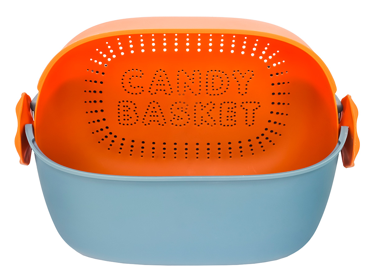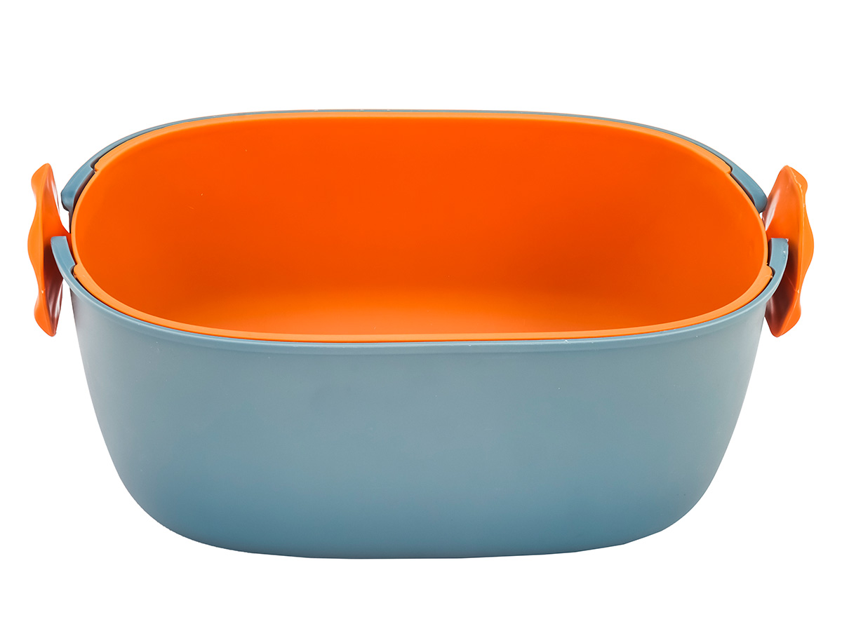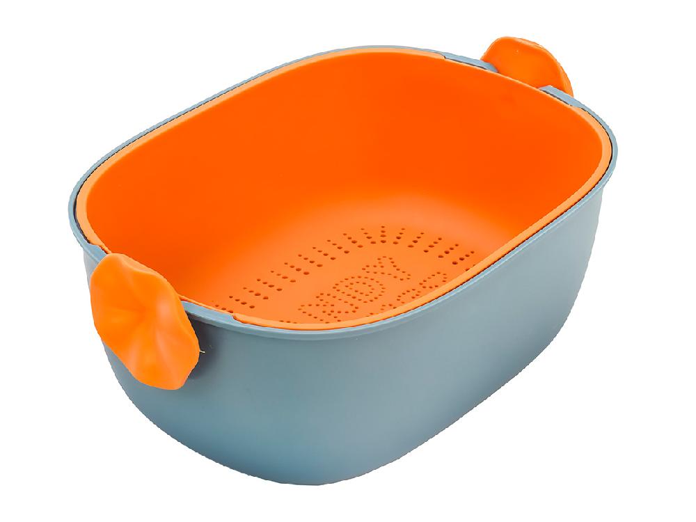 Дуршлаг с миской 2 в 1 овальный, пластиковый, 2.5 л, синий/оранжевый