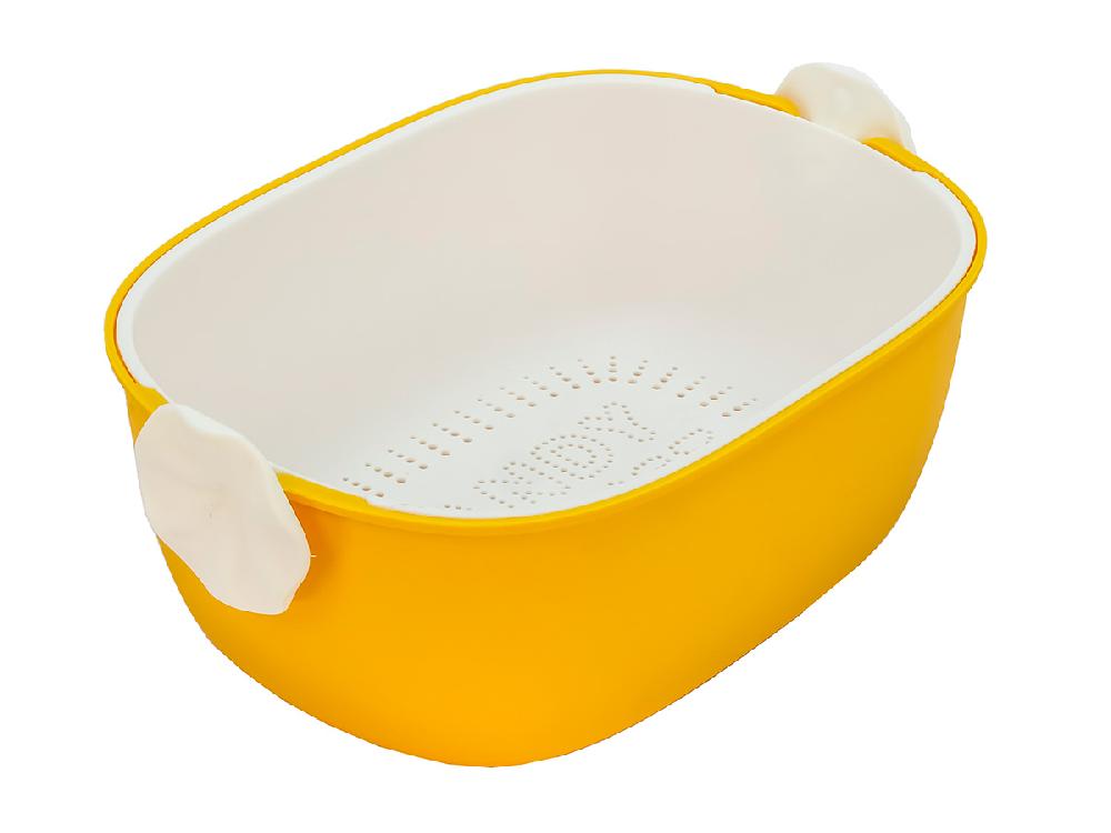 Дуршлаг с миской 2 в 1 овальный, пластиковый, 2.5 л, желтый/белый
