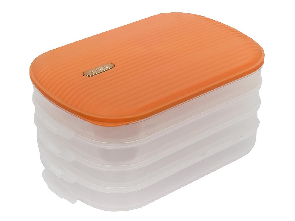 Контейнер с крышкой для хранения и заморозки продуктов на 4 секции, 32х22х16 см, оранжевый