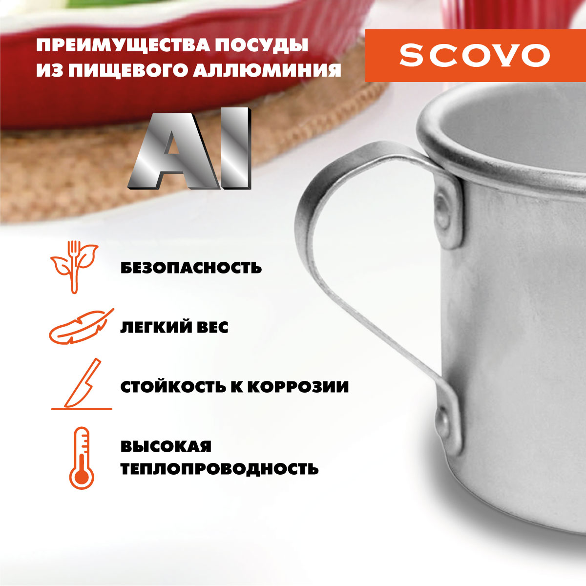 Кружка алюминиевая, SCOVO, МТ-090, 0.5 л