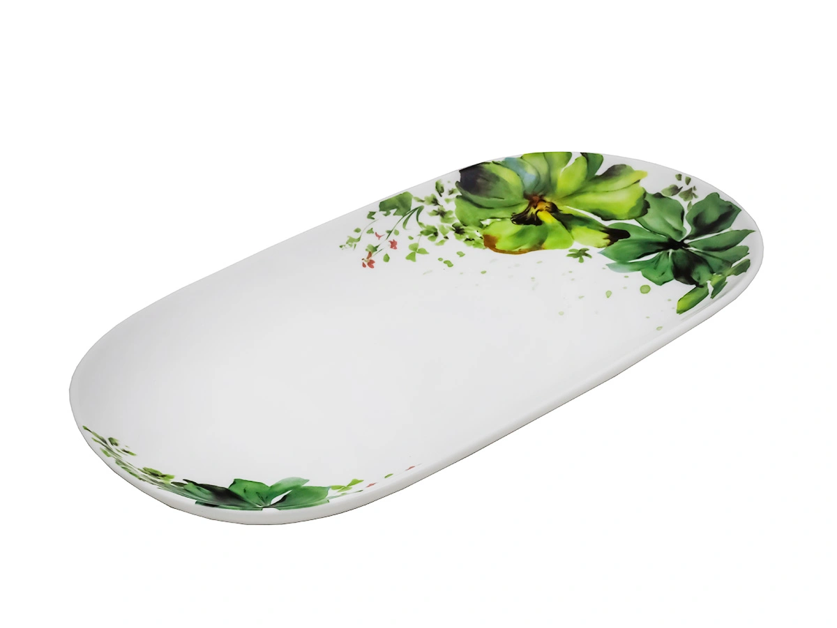 Блюдо для сервировки овальное Green Line от бренда PLOVER — идеальное решение для вашей кухни! Размеры блюда составляют 30 см в длину и 15 см в ширину, что позволяет удобно разместить на нём разнообразные блюда и закуски.