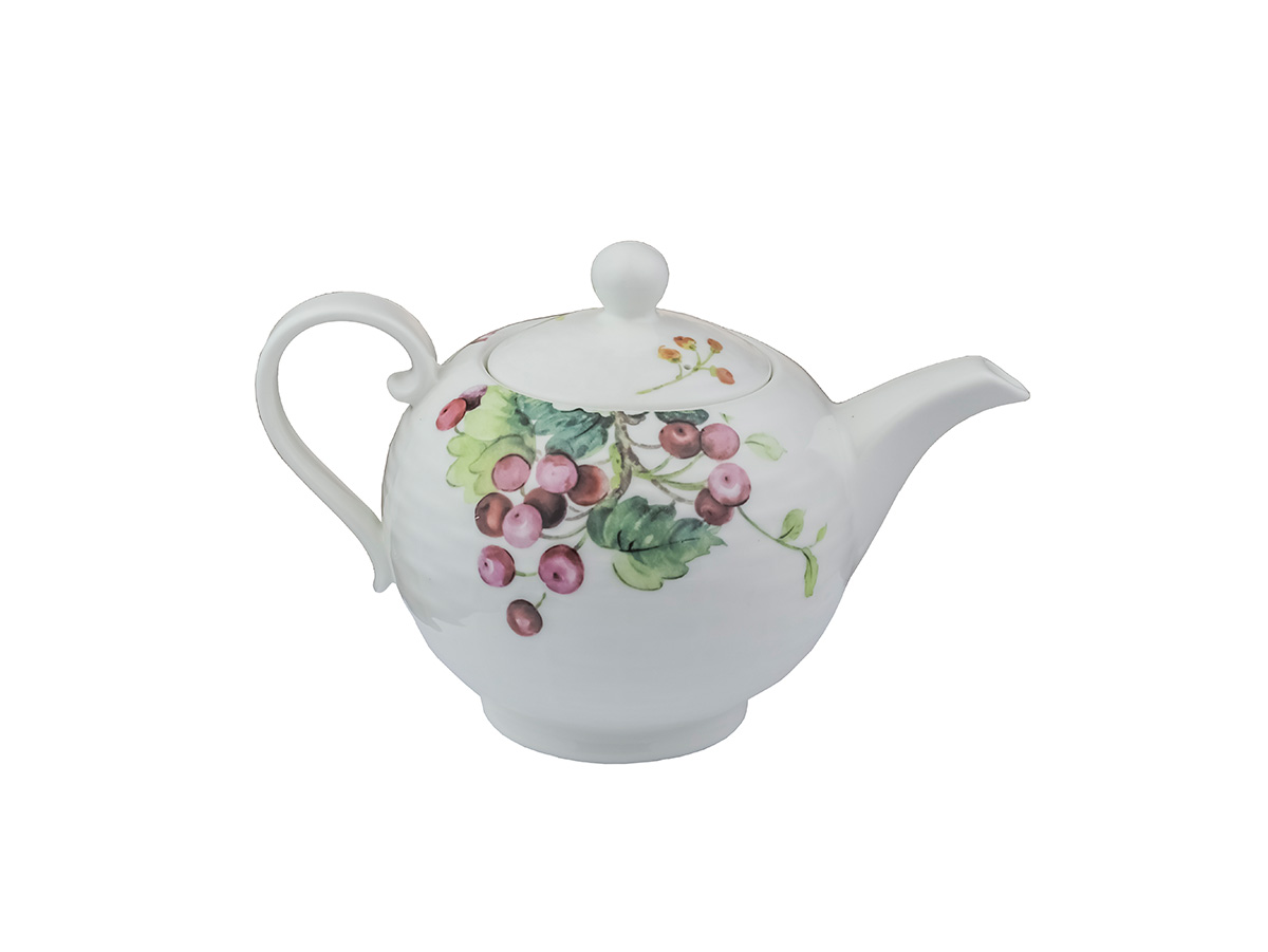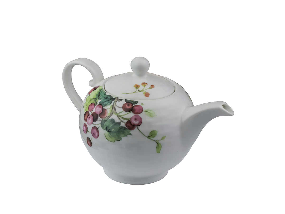 Белый цвет будет эффектно смотреться на Вашем столе, а утонченный рисунок спелых ягод придаст особой изюминки столу и создаст особую атмосферу. Этот чайник станет безупречным выбором для тех, кто ценит элегантность и утонченность в каждой детали.