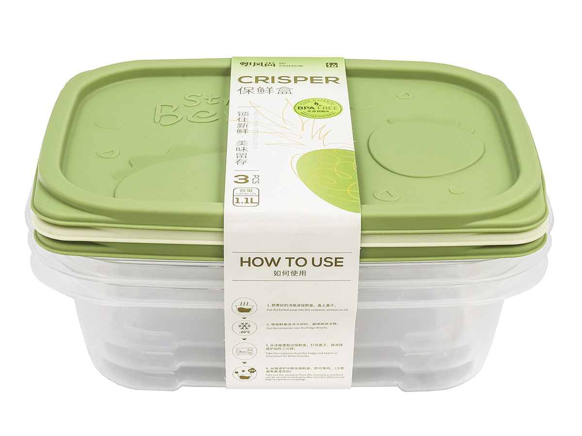 Набор включает в себя 3 герметичных пластиковых емкости с крышкой, объемами по 1 л.