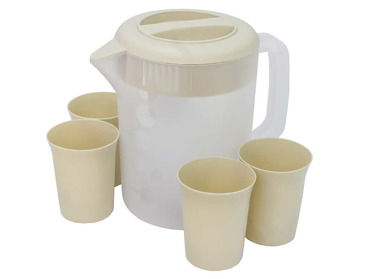 Пластиковый набор: кувшин и 4 стакана – идеальный выбор для вашей кухни, дачи или для поездок на природу! В него входит пластиковый кувшин объёмом 2.5 литра и четыре стакана по 300 мл.
