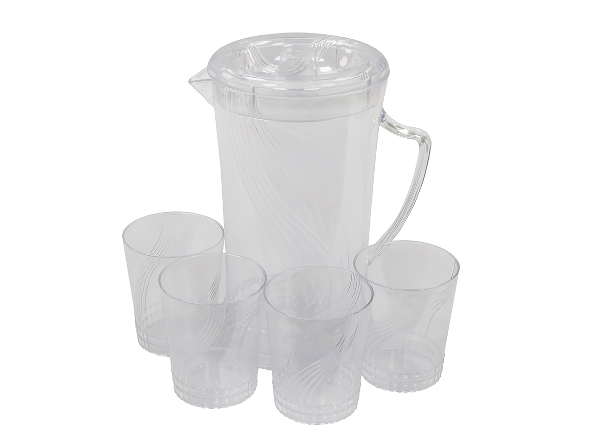 Пластиковый набор: кувшин и 4 стакана – идеальный выбор для вашей кухни, дачи или для поездок на природу! В него входит пластиковый кувшин объёмом 2 литра и четыре стакана по 300 мл.