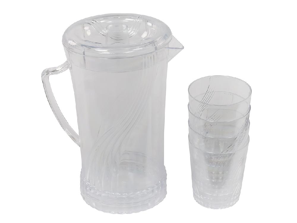 Кувшин с крышкой 2 л со стаканами 4 шт по 300 мл, пластик, прозрачный