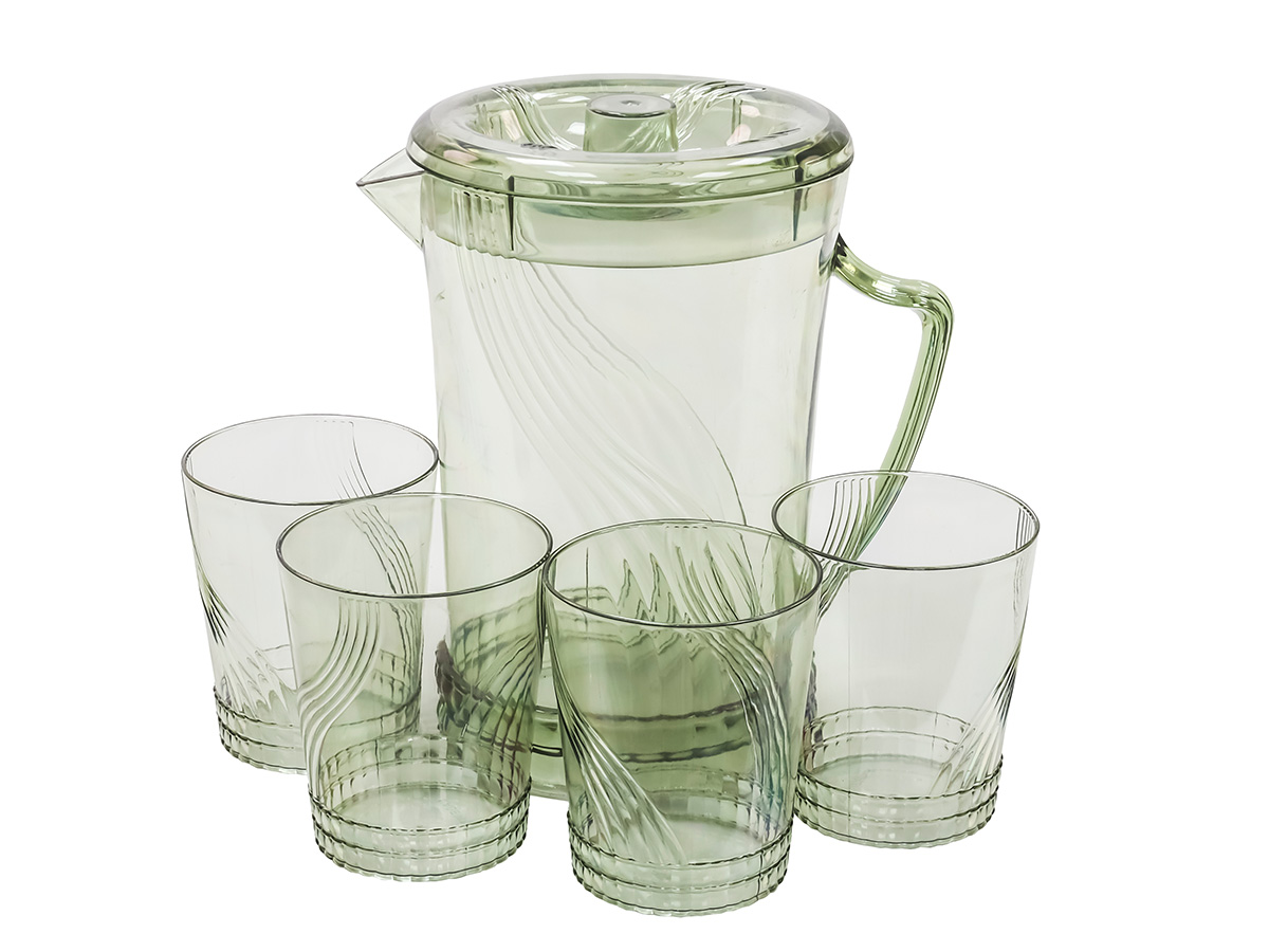 Кувшин с крышкой 1.5 л со стаканами 4 шт по 300 мл, пластик, зеленый