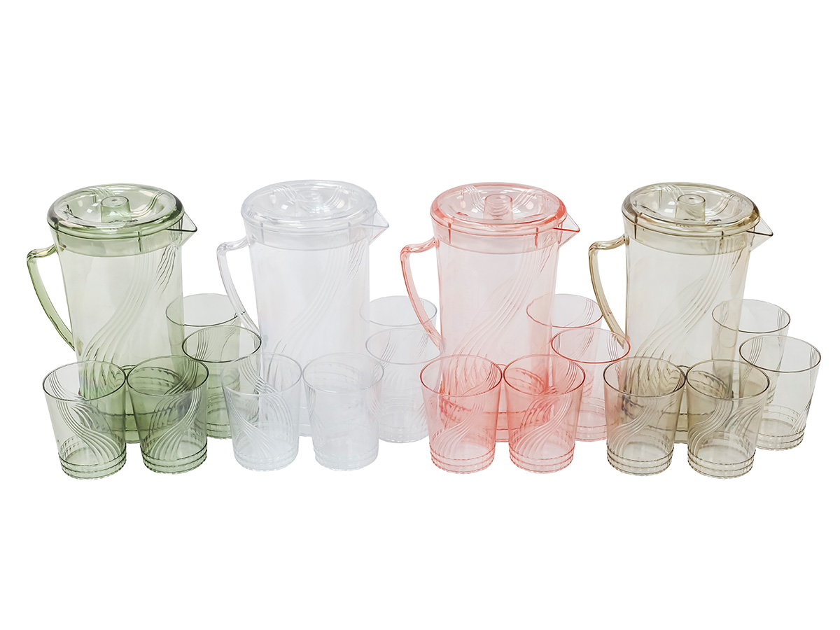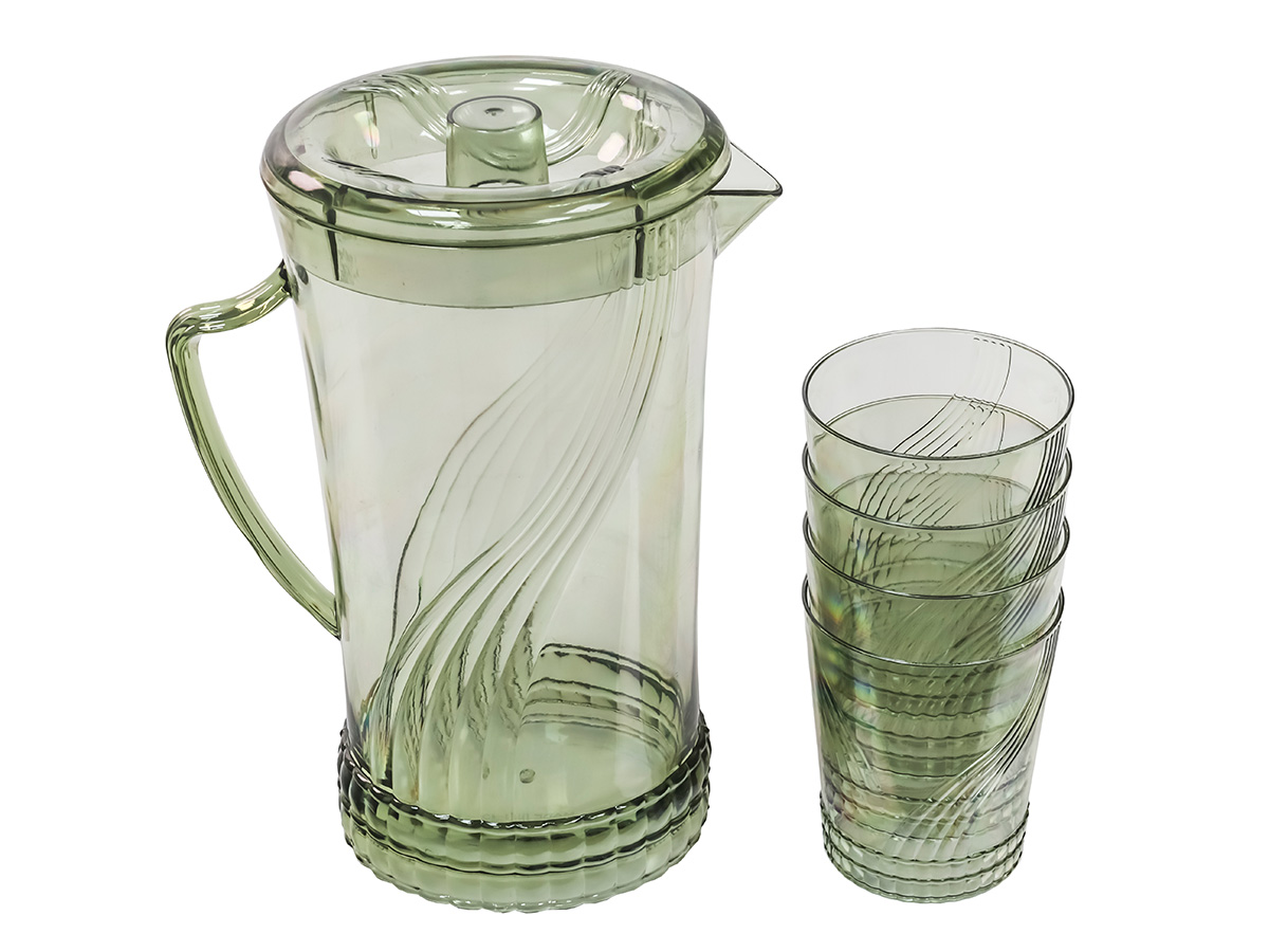 Пластиковый набор: кувшин и 4 стакана – идеальный выбор для вашей кухни, дачи или для поездок на природу! В него входит пластиковый кувшин объёмом 2 литра и четыре стакана по 300 мл.