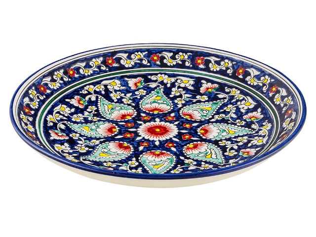 Керамическое блюдо для плова, страна производства Узбекистан. Артикул товара в магазине RS2_9. Ляган "Риштан", плоский, керамика, диаметр 32 см, купите в Москве или закажите доставку по России.