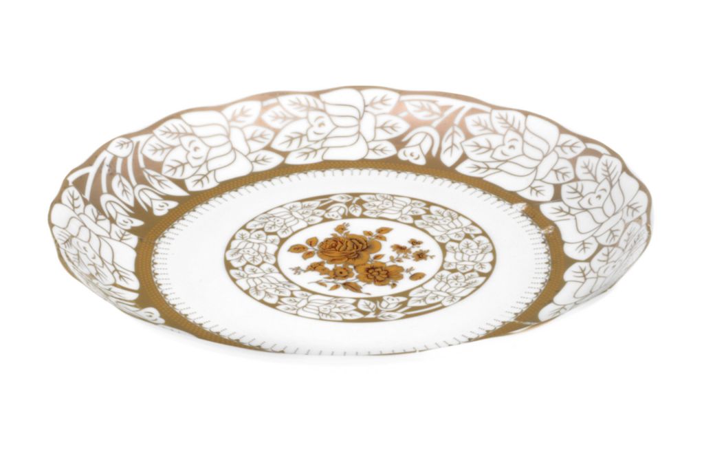 Ляган с позолотой на белом фоне выглядит поистине роскошно! Как и изображение розы - не случайно она была символом королевских династий. Нарядные тарелки, большие блюда, салатники, пиалы, конфетницы, чайники... Из отдельных предметов ассортимента Вы сможете составить собственный сервиз. Хранить его для особого случая или использовать каждый день - выбор за Вами.