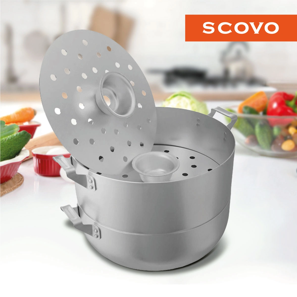 Трехуровневая мантоварка из матового алюминия, продукция российского производителя SCOVO. Объем 4,5 литра, диаметр 26 см, высота 18 см, расстояние между ярусами 3,5 см, диаметр отверстий 1 см, вес 1,72 кг. Артикул товара МТ-039. Купите в Москве мантоварку, SCOVO, МТ-039, 3-уровневую, 4,5 л, самостоятельно или обратитесь за помощью к консультанту нашего магазина.